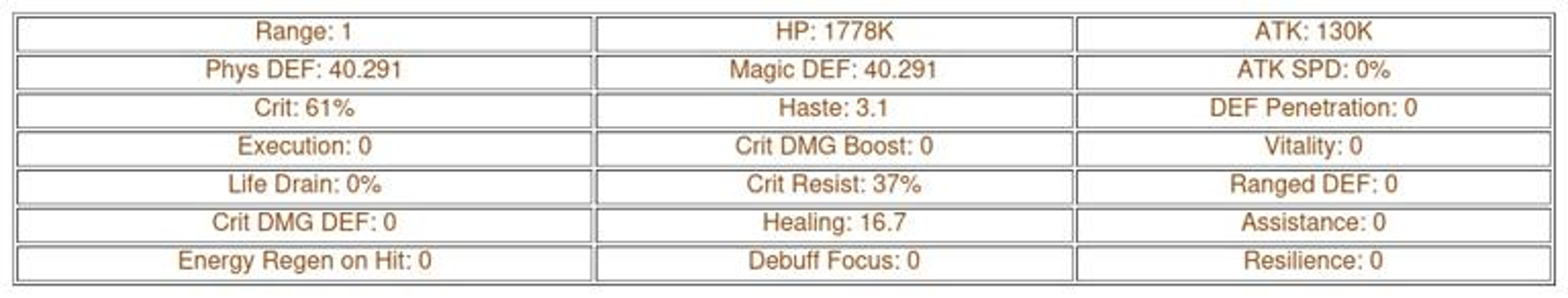 In combat, Niru targets the weakest enemy, dealing an initial attack of 120% damage plus damage equal to 0.3 times the enemy's current HP, with this additional damage capped at 450%. As he levels up: